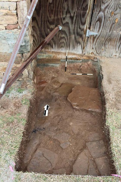Các cuộc khai quật bên ngoài AQE cho thấy đá lát ngay bên dưới bãi cỏ ngày nay. (Ảnh do Trung tâm Nghiên cứu Khảo cổ học William & Mary cung cấp)